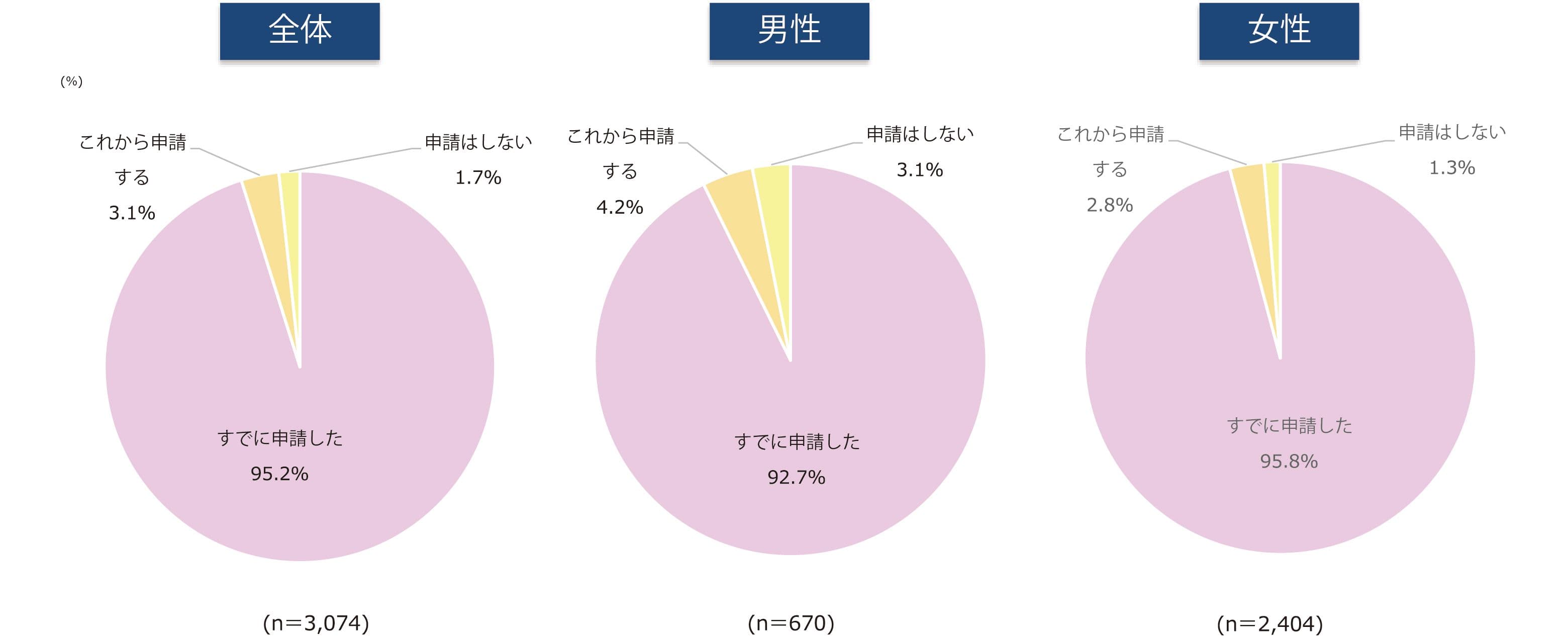 - 男性では 3.1% 、女性では 1.3% が「申請はしない」と回答している。